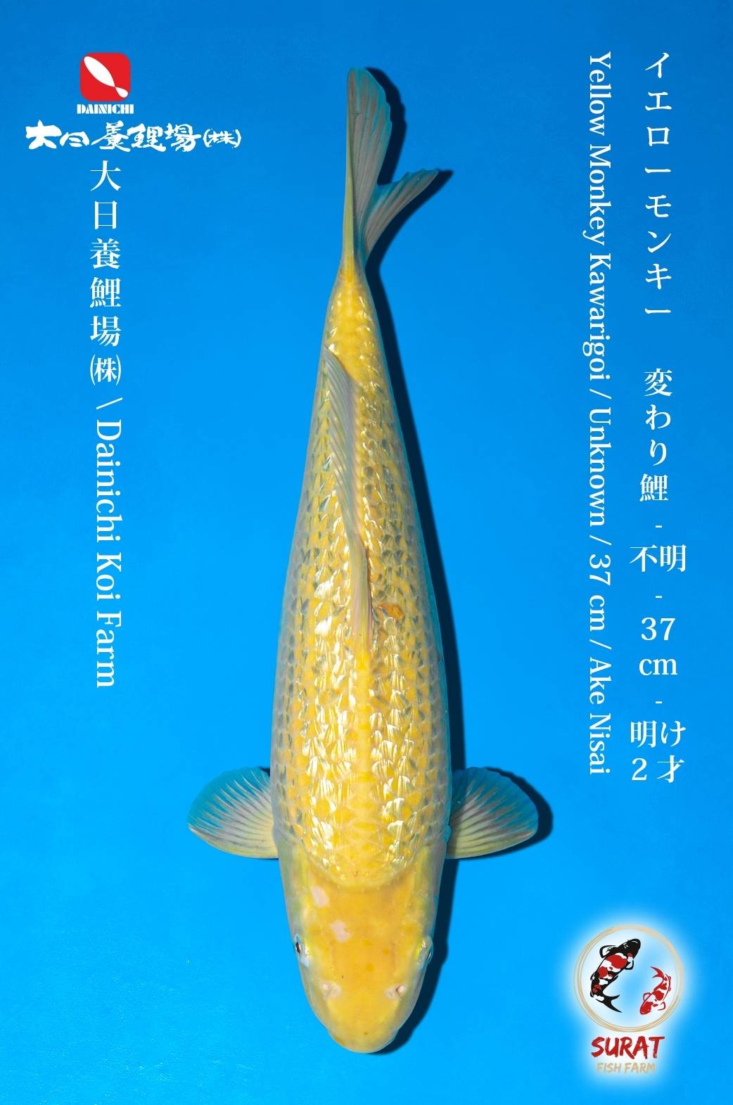 Breeder : Dainichi Koi Farm Gender : Unknown Size : 37cm Born : 2021